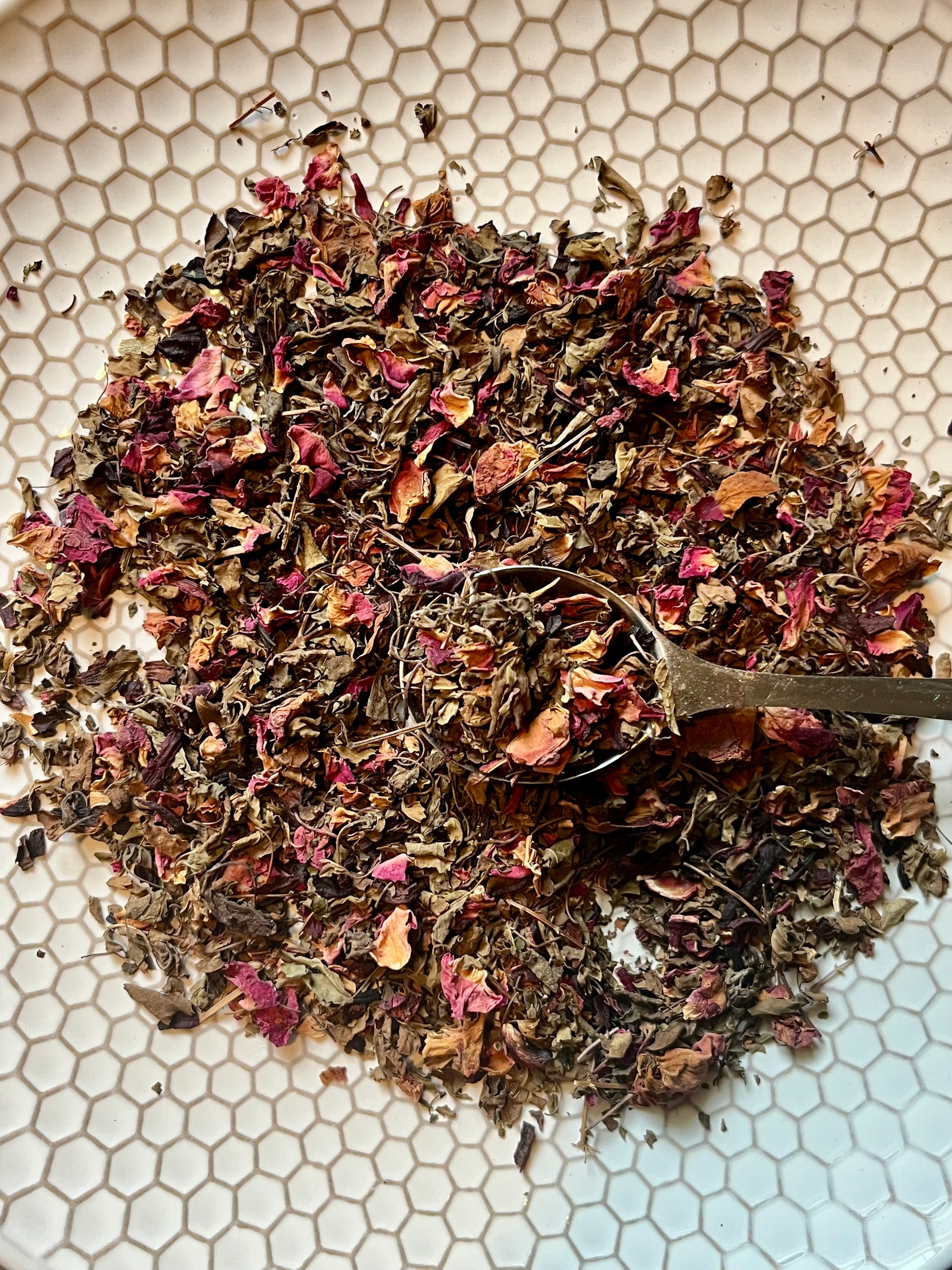 Tasting Notes: Bright, tart hibiscus, softened by rose and grounding with warmth of holy basil.