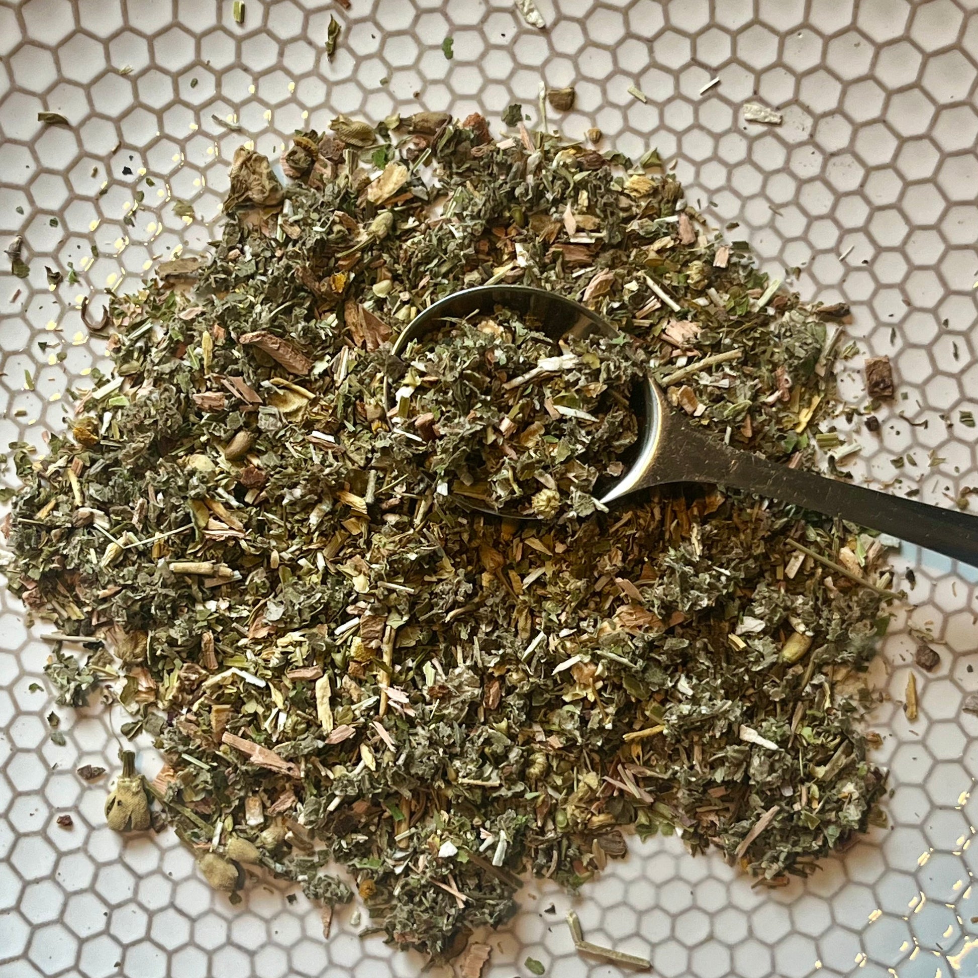 Embrace your natural rhythms with this supportive blend during your sacred moon cycle. A sacred infusion to honor the ebb & flow of a woman's natural rhythm, this blend weaves together the wisdom of the Earth and moon. Nourish, support, comfort & flow as you release to create your magic. Begin drinking a cup a day or two before you cycle starts. Drink up to 3-4 cups a day during your cycle to ease discomfort emotionally, physically and mentally.